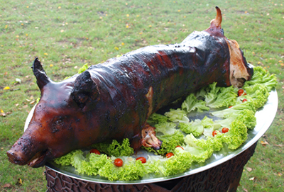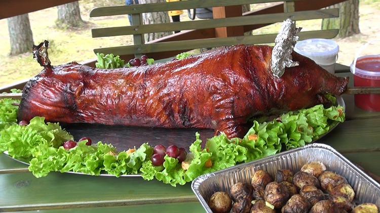 Cūka uz iesma, grilēts sivēns uz oglēm